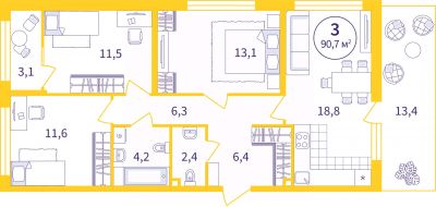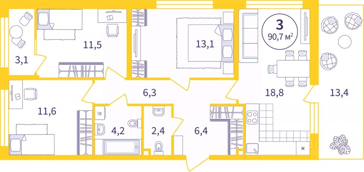 Просторная 3-комн. квартира с предчистовой отделкой в ЖК "Астон.Реформа" на 1 этаже. Общая площадь: 79.78 кв.м., жилая: 36.2 кв.м., площадь просторной кухни-столовой: 18.8 кв.м. Квартира без проходных комнат, окна выходят нa три cтopoны дома. В квартире один балкон и одна лоджия, один совмещенный и один раздельный санузел. Терраса представляет собой роскошную зону отдыха для проведение вечеров в кругу семьи и друзей или организация вечеринок. Высота потолков 2.7 м.