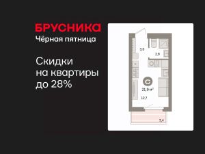 Студия в квартале "Депо". Особенности планировки: предчистовая отделка, балкон.