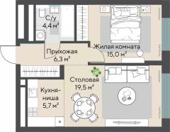 Продаётся 1-комнатная квартира в строящемся доме (Секции 2.3-2.4), срок сдачи: I-кв. 2028, общей площадью 51 кв.м., на 10 этаже.