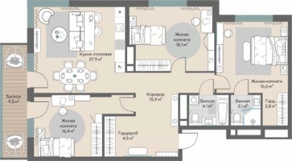 Продаётся 3-комнатная квартира в строящемся доме (Секции 1.4-1.6 (2 очередь)), срок сдачи: IV-кв. 2026, общей площадью 112.2 кв.м., на 3 этаже.