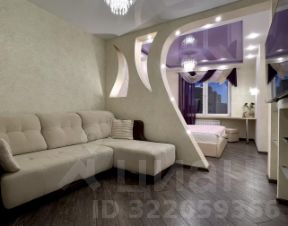 * Большая комната, зондированная на гостиную с диваном и телевизором и спальную.