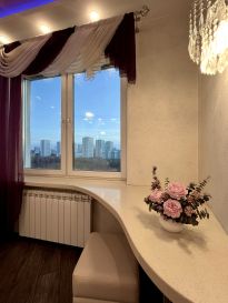 * Панорамная лоджия с видом с 9 этажа на лесопарковую зону располагает летом оборудовать ее под зону отдыха и проводить там романтические вечера.