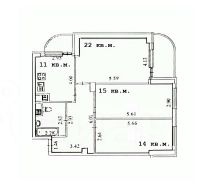 * с изолированными комнатами: гостиная 22 кв.м., спальня 15 кв.м., детская 14 кв.м.;