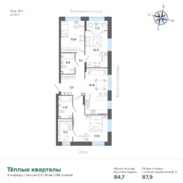 Теплые кварталы - квартальная застройка переменной этажности (от 7 до 25).Комплекс будет состоять из 5 очередей. В продаже 3 очередь, дом 2 - переменной этажности. Строительство уже ведется.