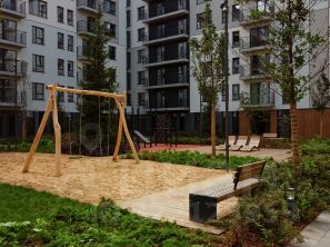 Благоустройство квартала основано на трёх принципах. Первый — особое внимание к воде. Архитекторы Брусники создадут внутри застройки систему дождевых садов, которые будут фильтровать сток (в том числе с крыш зданий) и снижать нагрузку на ливневую канализацию .
