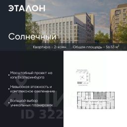 Продается квартира 363, по адресу ЖК "Солнечный", корпус Солнечный, корпус 5.3 в Солнечный на 7 этаже, с площадью 56.53 м2.