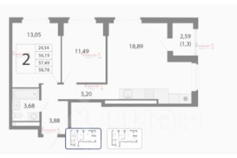 57 м²
