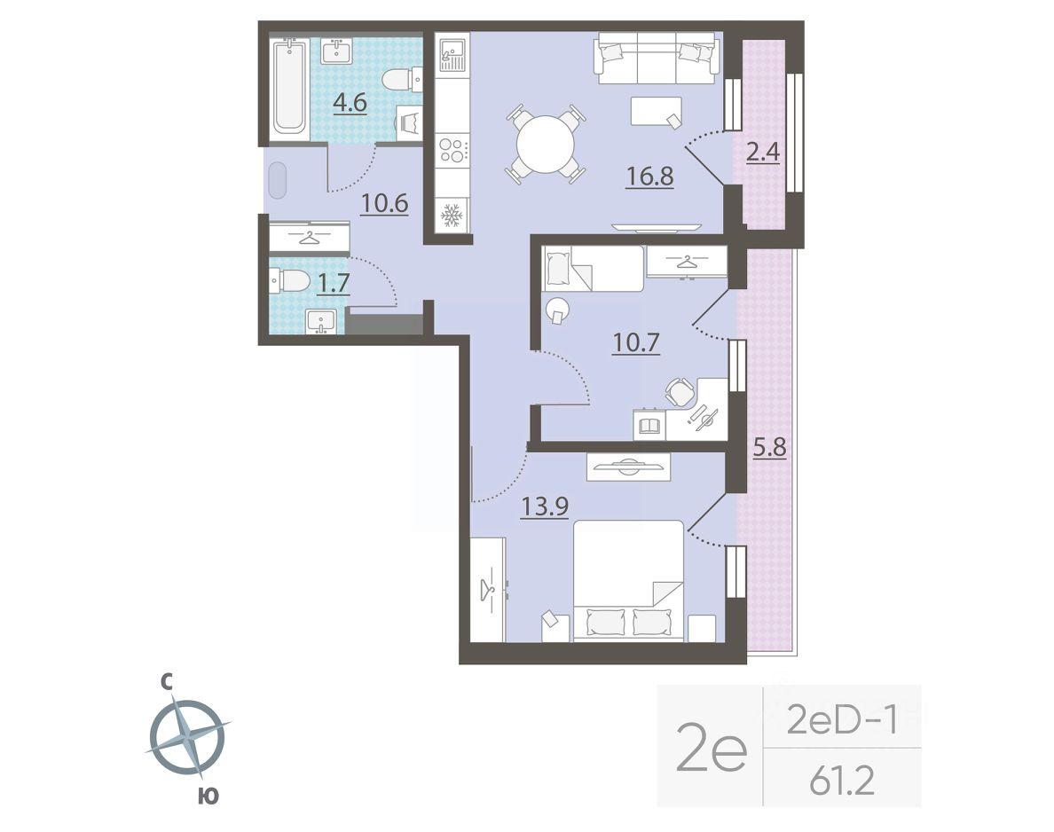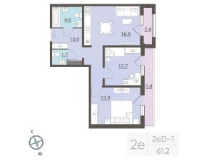 Жилая площадь 24.6 м2, кухня 16.8 м2, отделка под ключ. Раздельных санузлов - нет, балконов - 1, лоджий - 1.