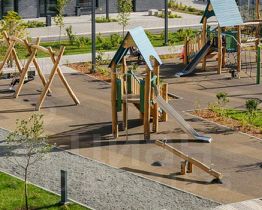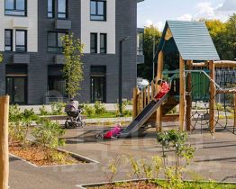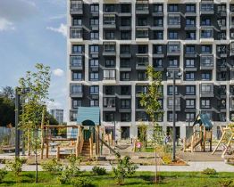 Проект включает шесть домов и многоуровневый паркинг. На первых этажах открываются кафе, магазины и полезные сервисы. А в уютных дворах-парках есть детские и спортивные площадки.
