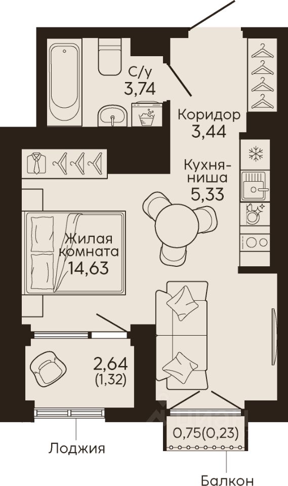Жилая площадь14,6 м²