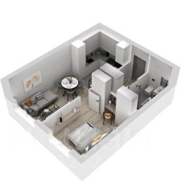 Формат квартиры евро-2: просторная кухня-гостиная с выходом на балкон, уютная спальня, общая площадь 33,5 м.кв., комфортный 13 этаж, отделка под чистовую, окна выходят на запад в сторону Меги.