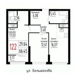 Продаётся 2-комнатная квартира в строящемся доме (Дом 1 секция 1), срок сдачи: II-кв. 2026, общей площадью 66.45 кв.м., на 18 этаже. Новый жилой комплекс "Лувр" от застройщика "СЗ Нижнеисетский пруд" расположен по адресу: г. Екатеринбург, улица Большакова.