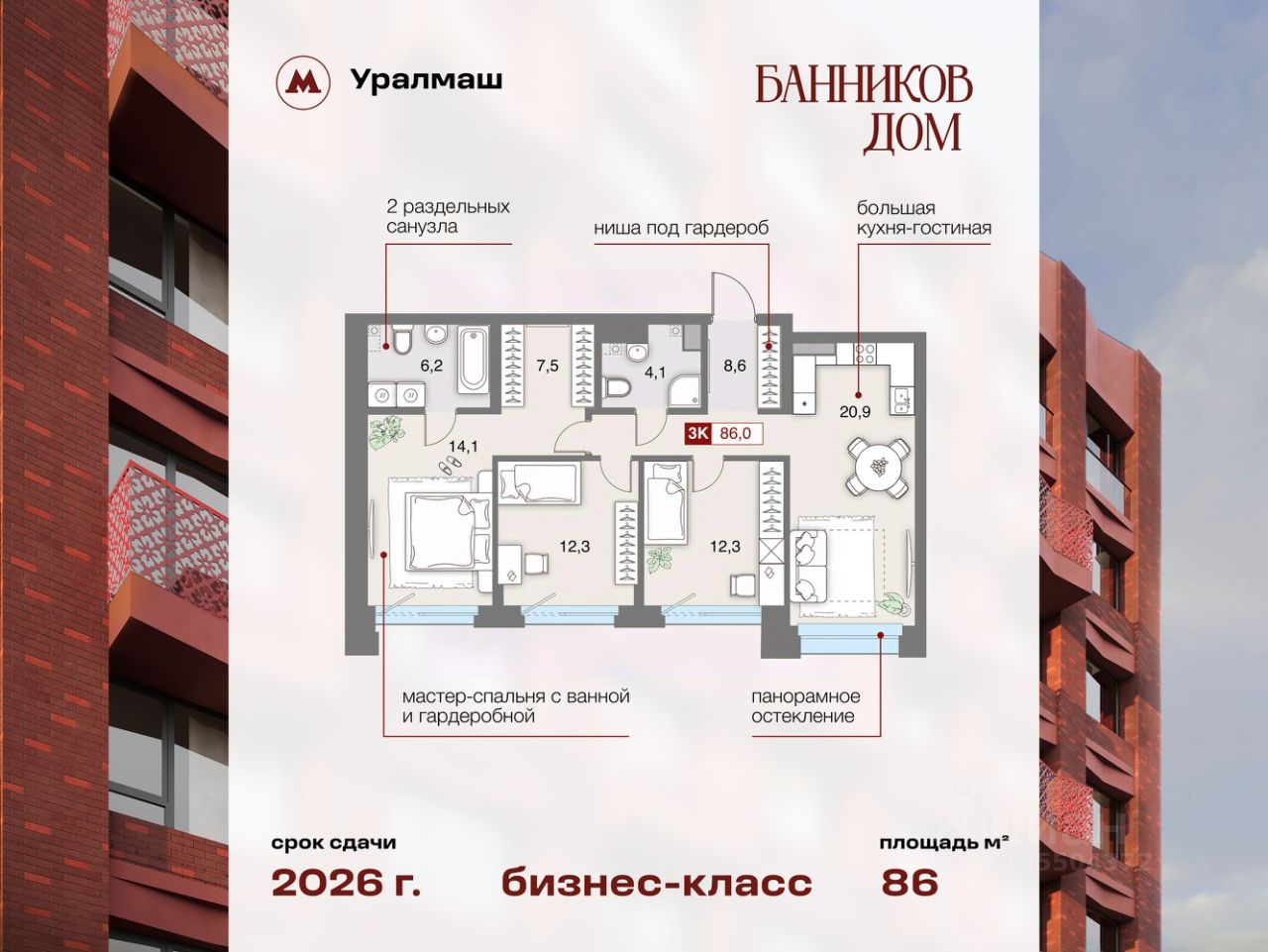 ЖК "Банников Дом" — дом бутик-класса в самом центре Уралмаша. Эксклюзивность проекта заключена в его камерности: всего 72 квартиры, расположенные в секциях высотой 5 и 8 этажей, создают атмосферу закрытого клуба, доступного лишь избранным. Одной из ключевых особенностей комплекса является приватная лаунж-терраса на крыше, где созданы различные зоны отдыха: летний коворкинг, уютная детская площадка, веранда для йоги, пергола с качелями, зона для воркаута и шезлонги для релаксации. Вашему комфорту также способствуют: приватное лобби с авторским дизайном, детская игровая комната, коворкинг, консьерж-сервис 24/7 и двухуровневый подземный отапливаемый паркинг. "Банников Дом" — выбор тех, кто ценит комфорт и уединение.