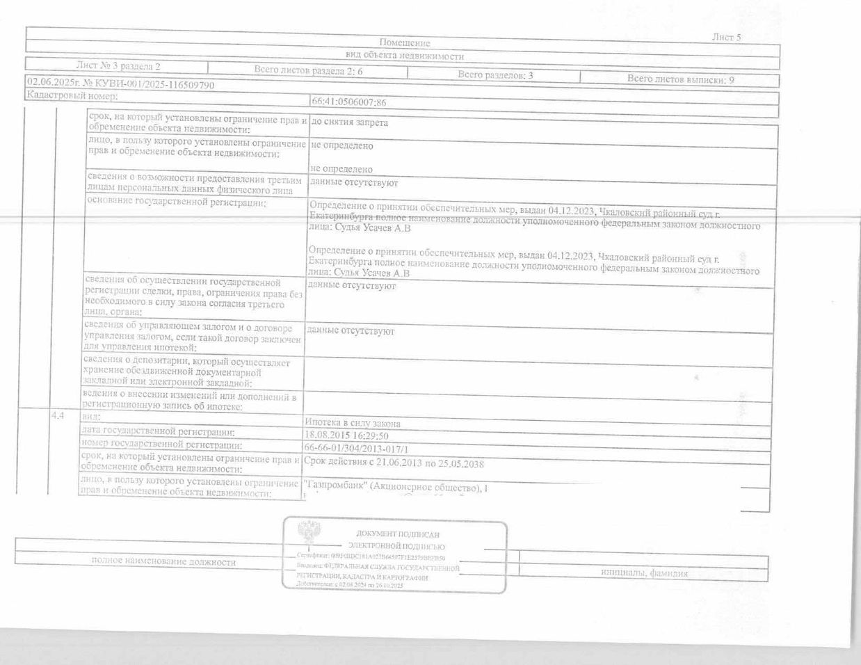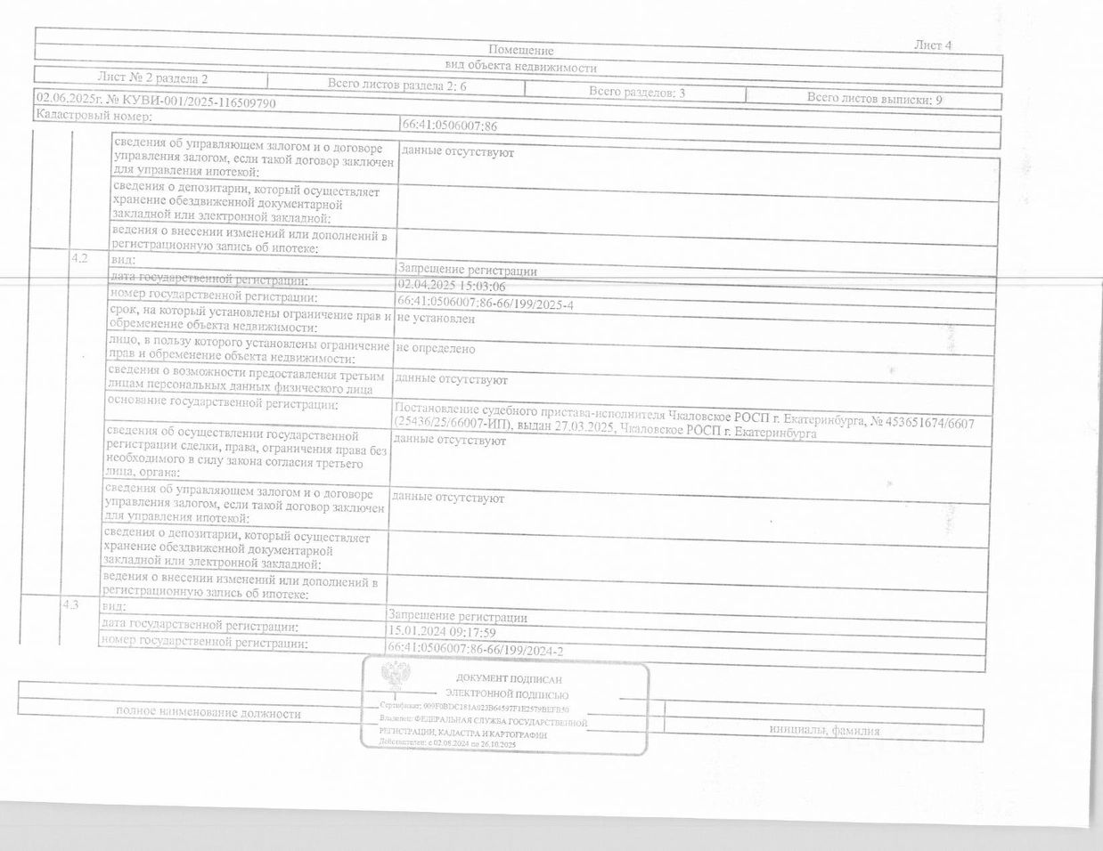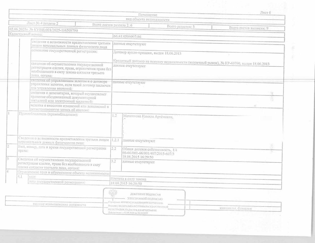 Должник: Махиянов А.А., Махиянова К.А., Собственник: Махиянов А.А., Махиянова К.А. Лот: Жилое помещение (квартира), площадь 42,6 кв.м., кадастровый номер: 66:41:0506007:86, г. Екатеринбург, ул. Бисертская, д. 131, кв. 221, (зарегистрированные лица - 3 взрослых, 2 несовершеннолетних), н/ц: 2529804,68 р, з-к: 2529 р, код: 0014, рег. 07-1595/25