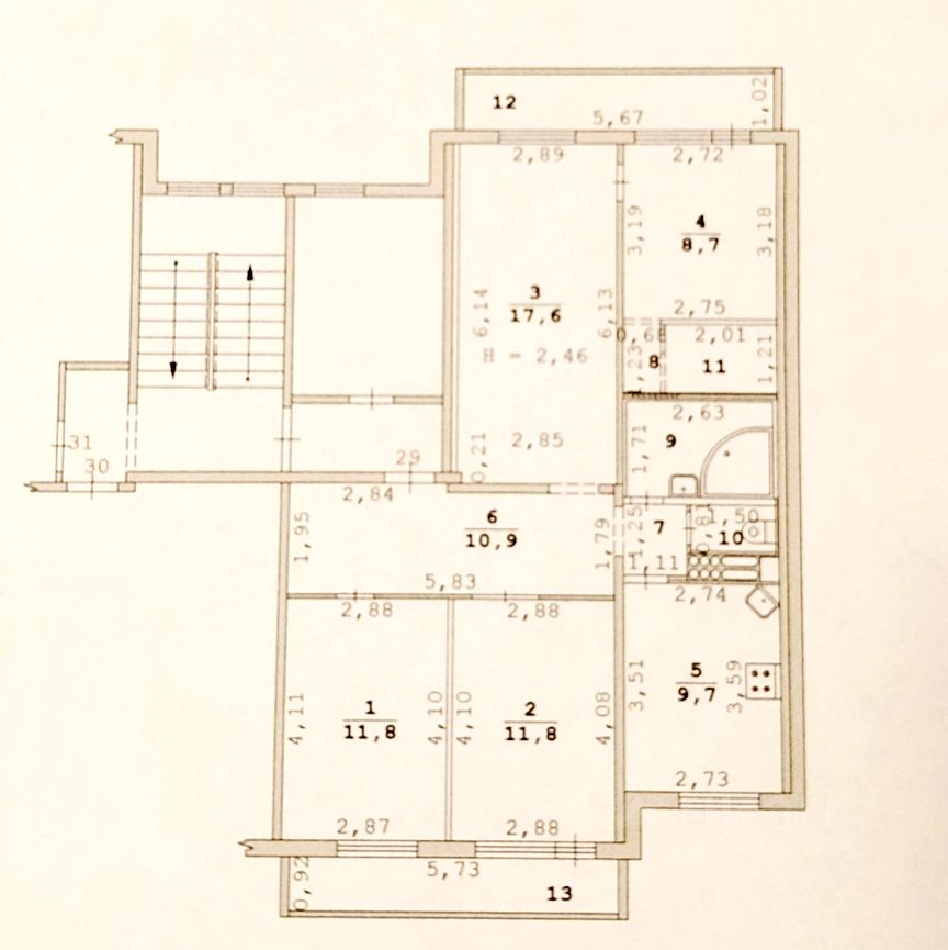 Продается просторная 4-к квартира 80,8 м² в Чкаловском районе.