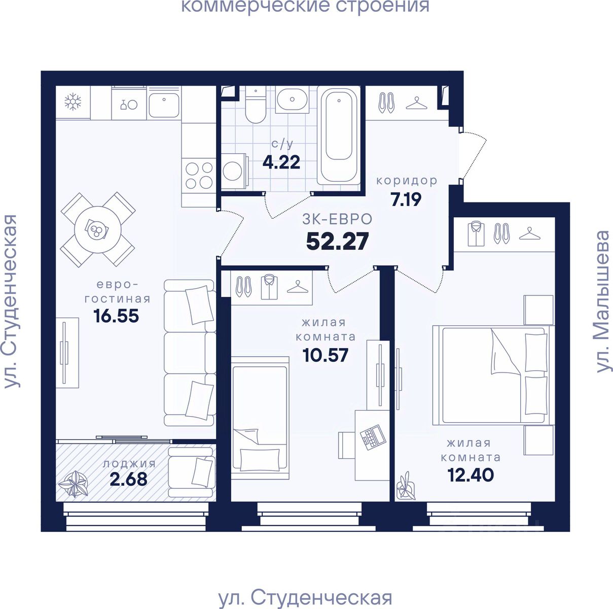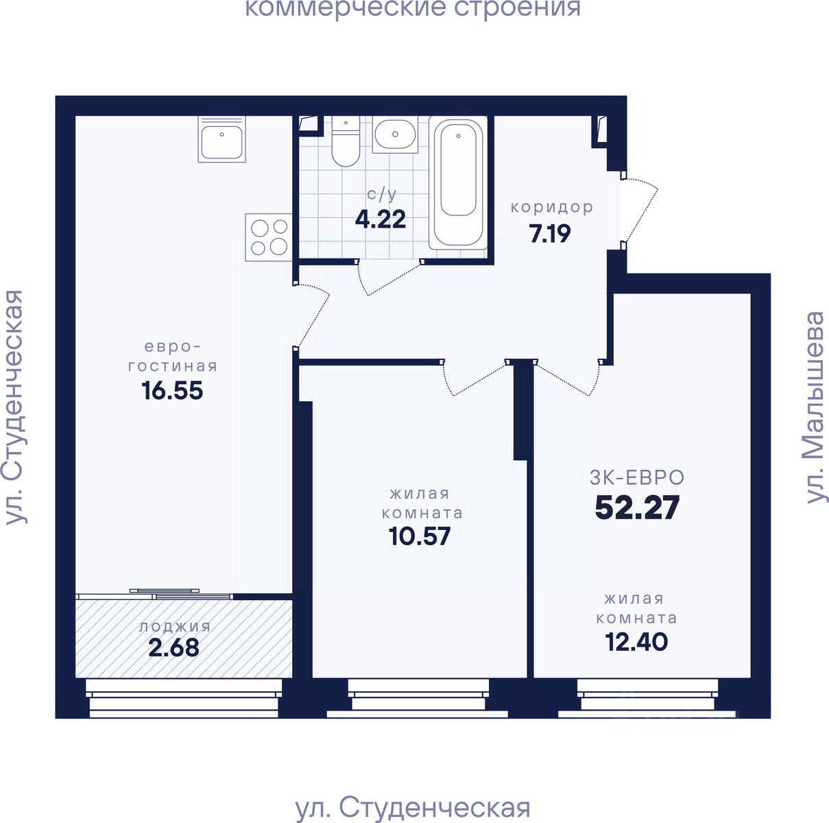 Общая площадь52,27 м²