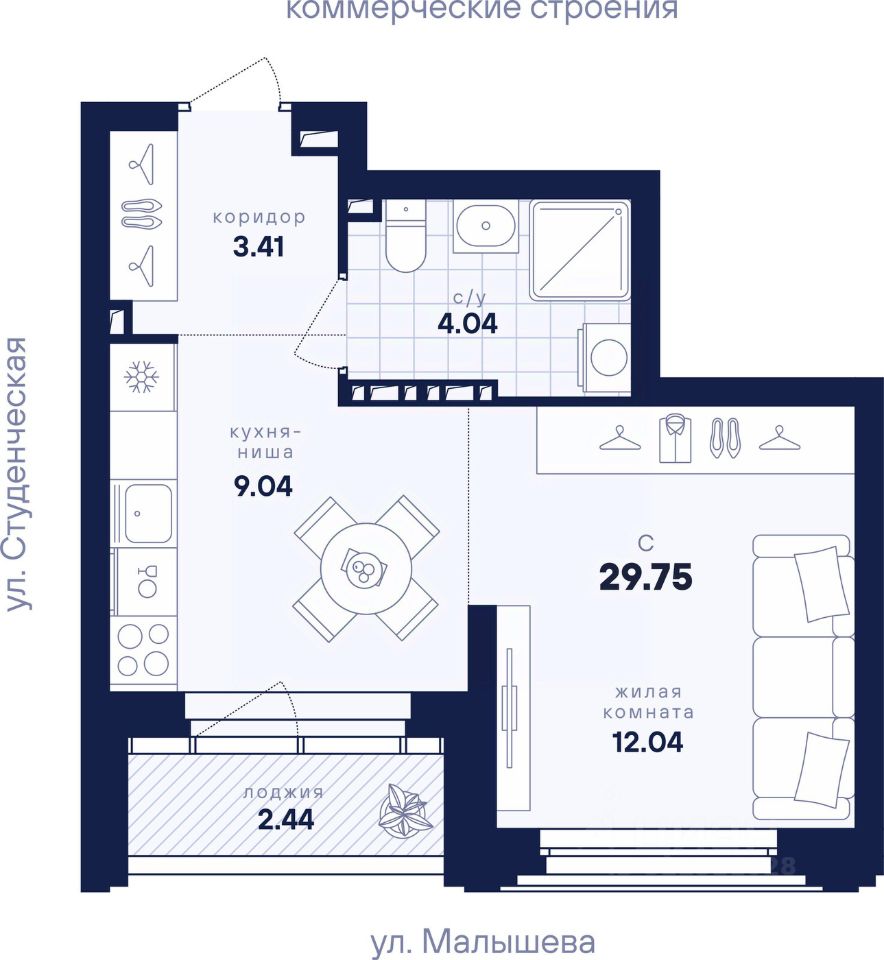 Общая площадь29,75 м²