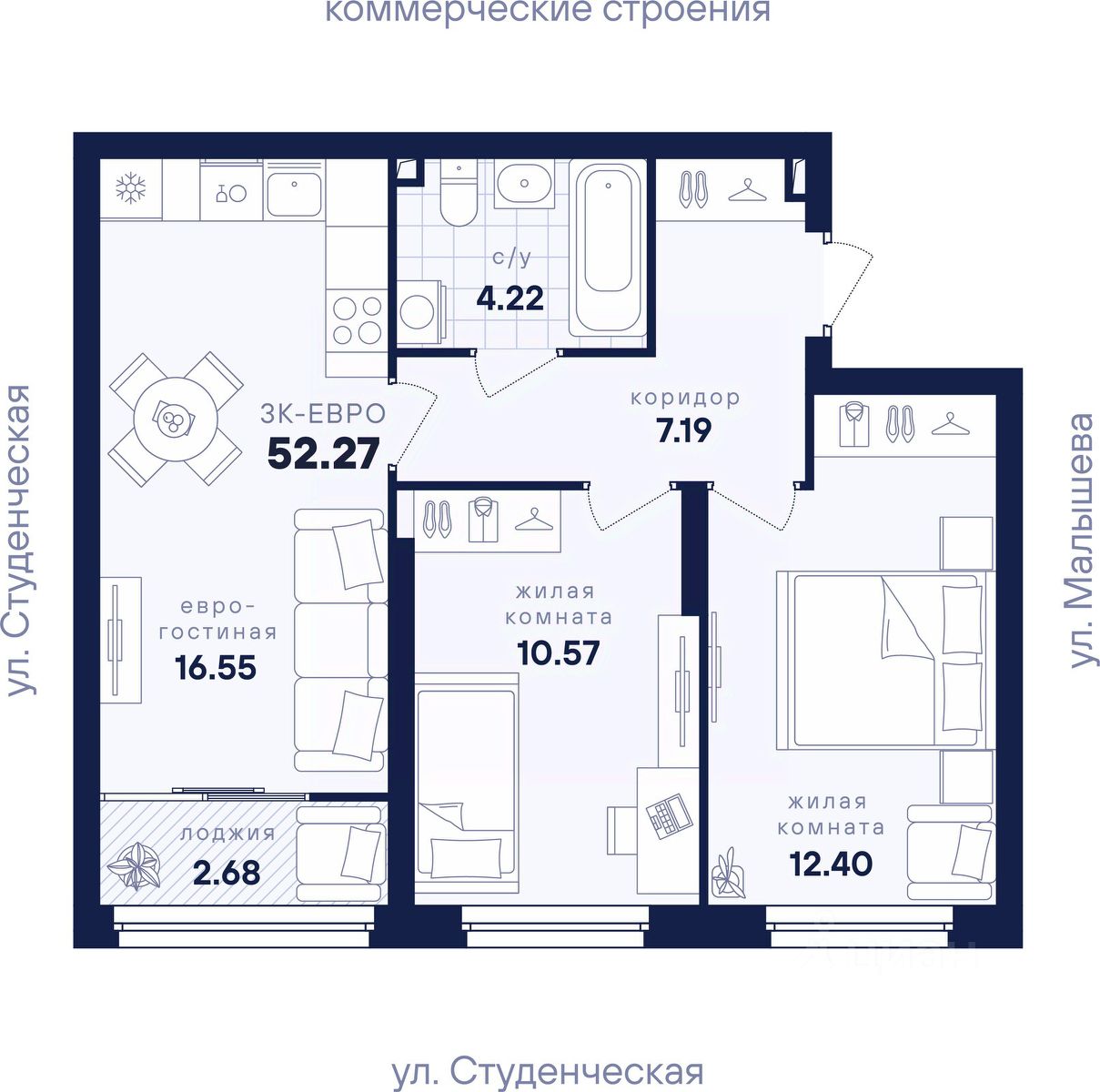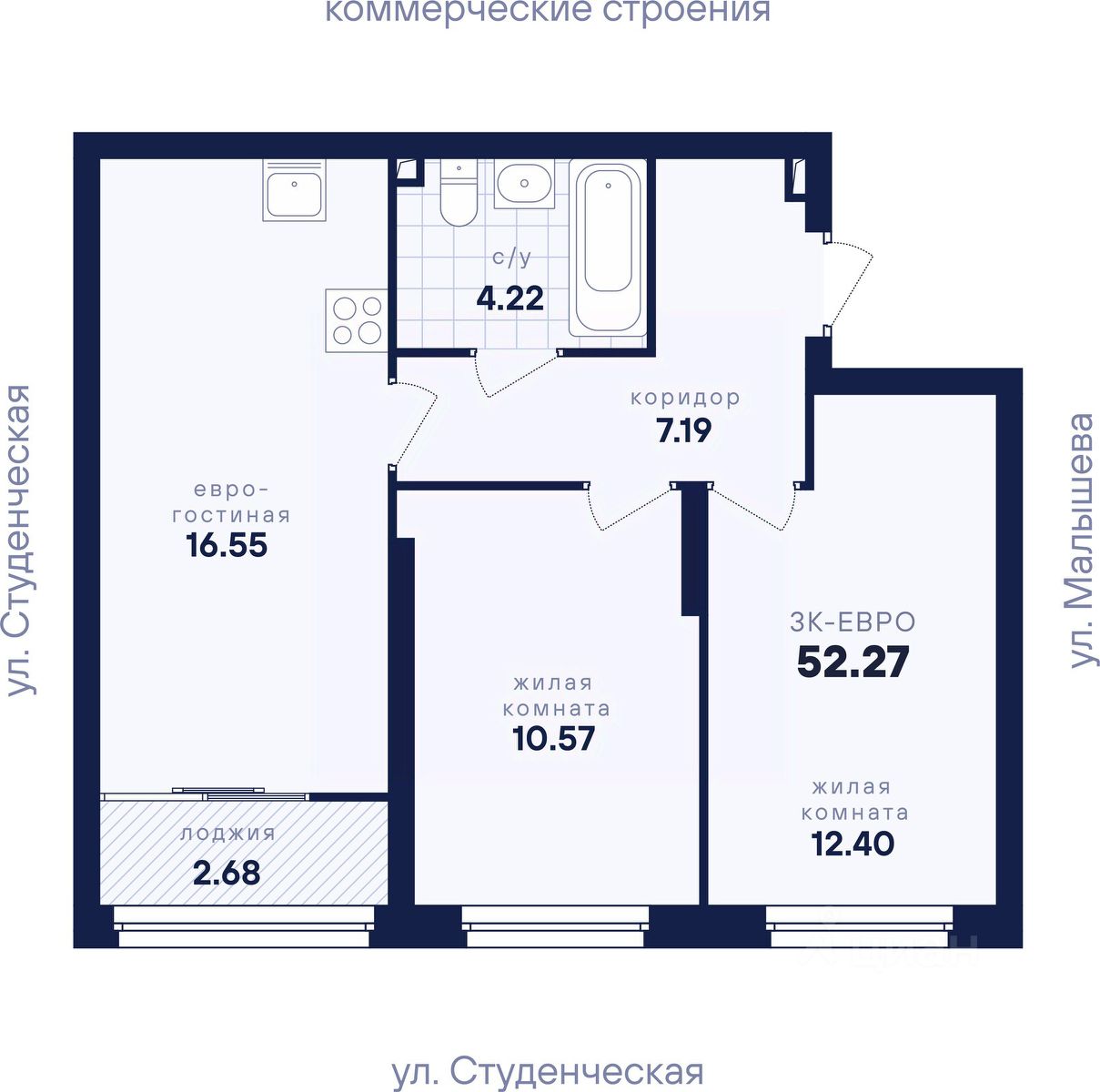 Общая площадь52,27 м²
