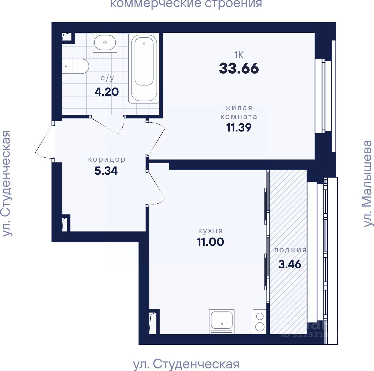 Общая площадь33,66 м²