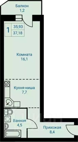 Продаётся просторная квартира-студия на 9 этаже в 10-этажном доме.