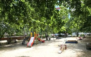 Во дворе спортивный корт, детская площадка, дом культуры с секциями. Спорт залы, дет.сады в округе(7шт) до 10 минут пешком, кинотеатры/метро- 15мин.пешком,почта через дорогу, магазины всё рядом. Три школы+ Гимназия 70 (по прописке) - 5 минут пешком. Остановка транспорта в реальных 5 минутах пешком. Но за счёт того, что дом стоит во дворах и этаж высокий - ни пыли от машин, ни шума. В 3х минутах ходьбы - Парк Зеленая Роща (с собачей площадкой)