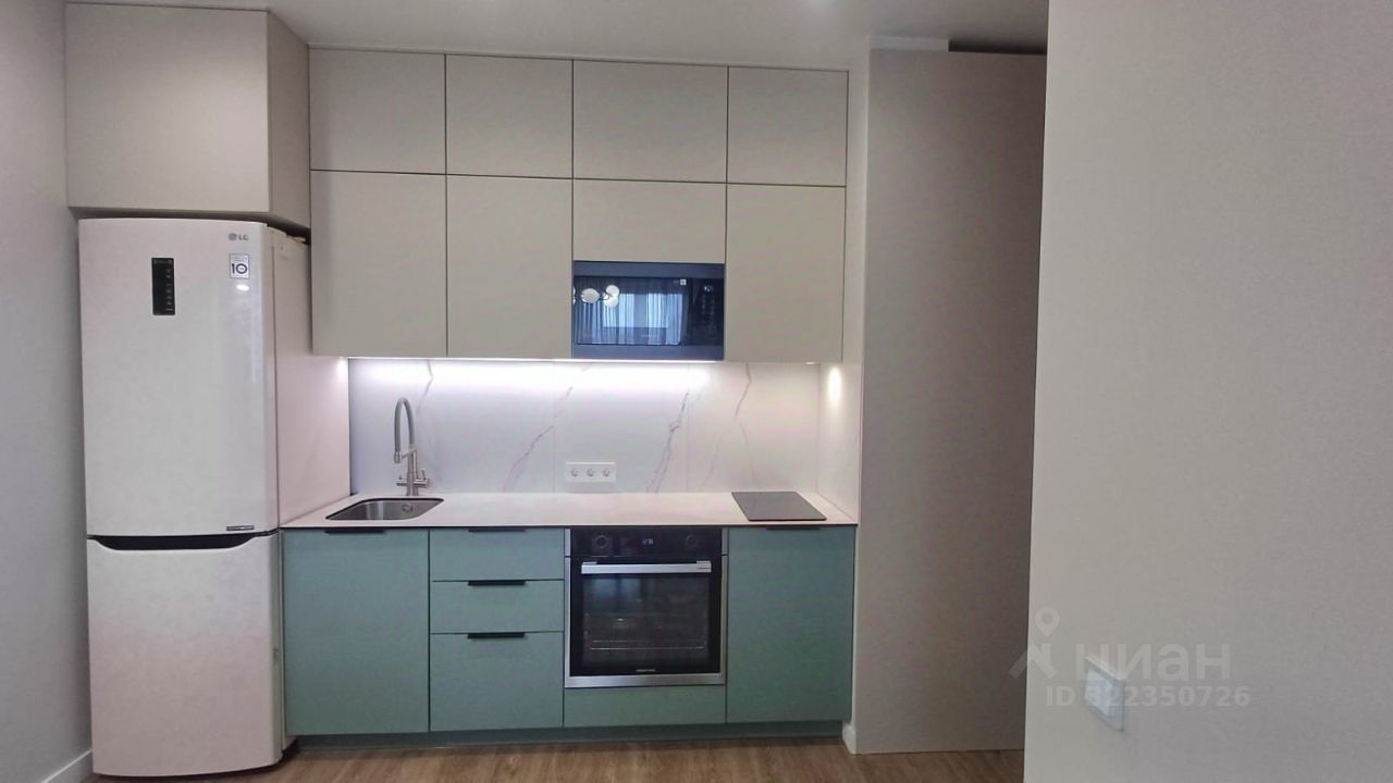 - Стильная и функциональная кухня со всей необходимой встроенной техникой: варочная поверхность, компактная вытяжка, микроволновка и духовой шкаф.