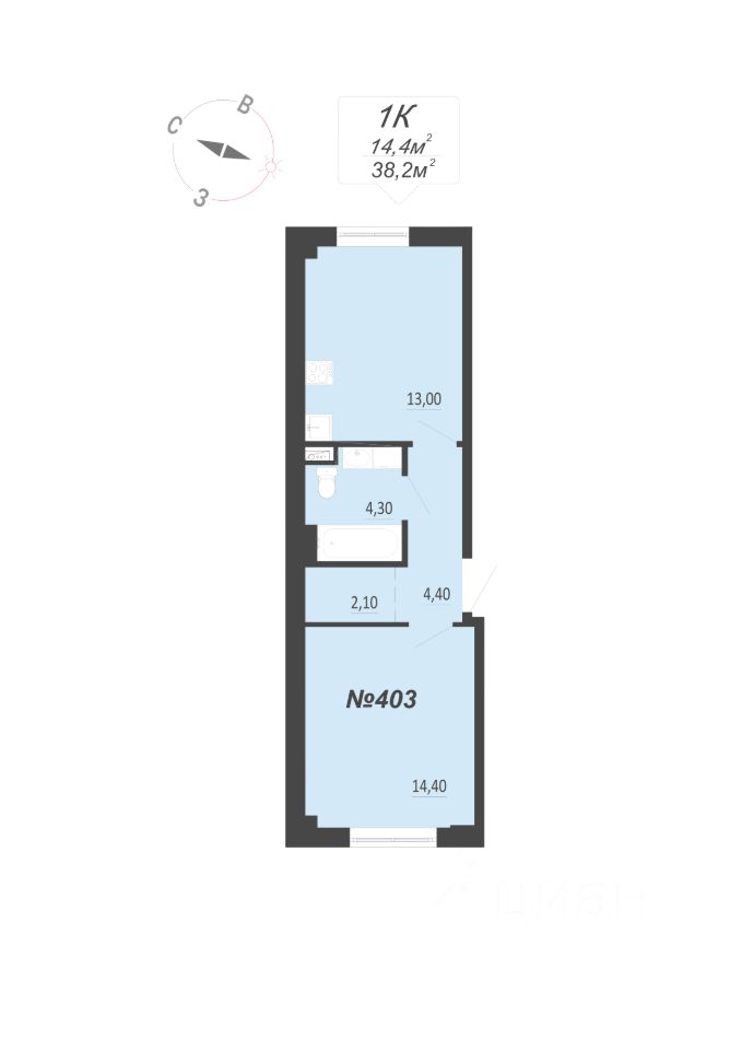 Жилая площадь14,4 м²