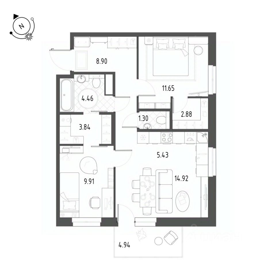 Продаётся 3-комнатная квартира в сданном доме (Таватуйская, 14А/2 (Дом 2)), срок сдачи: II-кв. 2025, общей площадью 64.8 кв.м., на 19 этаже. Проект застройки включает 9 жилых домов, 3 надземных многоуровневых паркинга почти на 900 машино-мест и встроенный детский сад для 165 детей. Общая площадь квартир составит порядка 90 тыс. кв. м, под коммерческие помещения отведено около 3500 кв. м. Участок имеет прямоугольную форму, что позволяет эффективно расположить все запланированные объекты и зонировать территорию. Строительство комплекса будет осуществляться поэтапно, в формате девяти очередей.