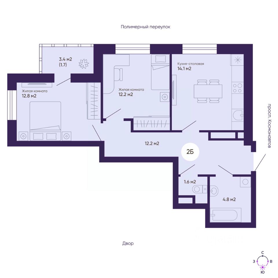 Общая площадь59,4 м²