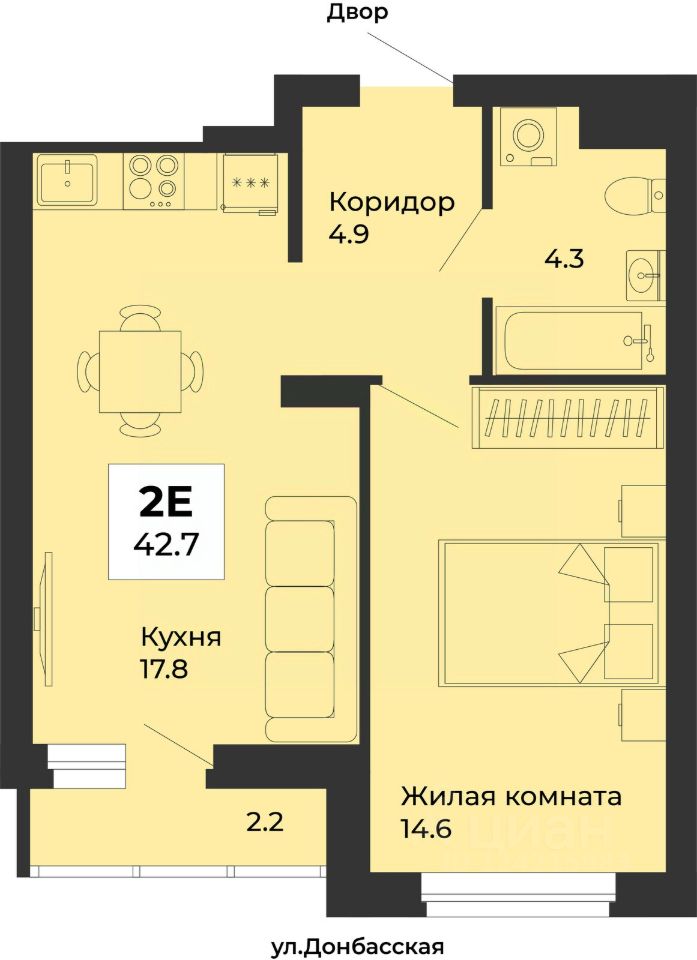 Продаётся 2-комнатная квартира в строящемся доме (Дом 5), срок сдачи: III-кв. 2028, общей площадью 42.7 кв.м., на 4 этаже. ЖК "Белая башня" - дома с примечательной архитектурой в сердце района Уралмаш. Комплекс расположен вблизи ведущих транспортных линий: ул. Донбасская и ул. Машиностроителей. "Белую башню" отличает развитая инфраструктура в сочетании с природными и историческими богатствами: рядом парк Победы, озеро Шувакиш, водонапорная "Белая башня". В пешей доступности несколько школ, детских садов, кафе и магазинов. Есть спортивная школа по дзюдо и самбо, лыжная база, спортивный комплекс "Олимп" и домашняя тренировочная арена ФК "Урал" - "СКБ-Банк Арена". В 5 минутах ходьбы ГКБ 14 и один из лучших диагностических центров области. Рядом с домом остановки трамваев, троллейбусов и автобусов.