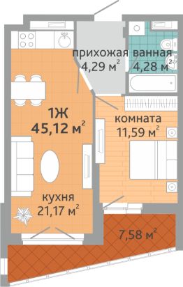 Продаётся 1-комнатная квартира в сданном доме (Коперника, 33), срок сдачи: III-кв. 2025, общей площадью 45.12 кв.м., на 9 этаже. Новый жилой дом от застройщика "СЗ Дельа-Групп" расположен по адресу: г. Екатеринбург, улица Викулова (дублёр).