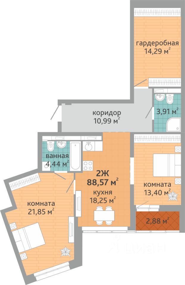 Продаётся 2-комнатная квартира в сданном доме (Коперника, 33), срок сдачи: III-кв. 2025, общей площадью 88.57 кв.м., на 10 этаже. Новый жилой дом от застройщика "СЗ Дельа-Групп" расположен по адресу: г. Екатеринбург, улица Викулова (дублёр).