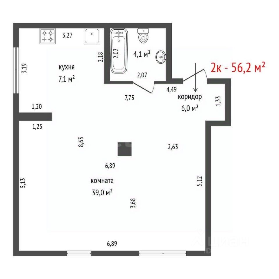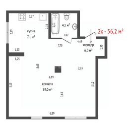 Продается квартира общей площадью 56 кв. м в современном монолитно-кирпичном доме в Пионерском микрорайоне. Высота потолков 3,5 метра.