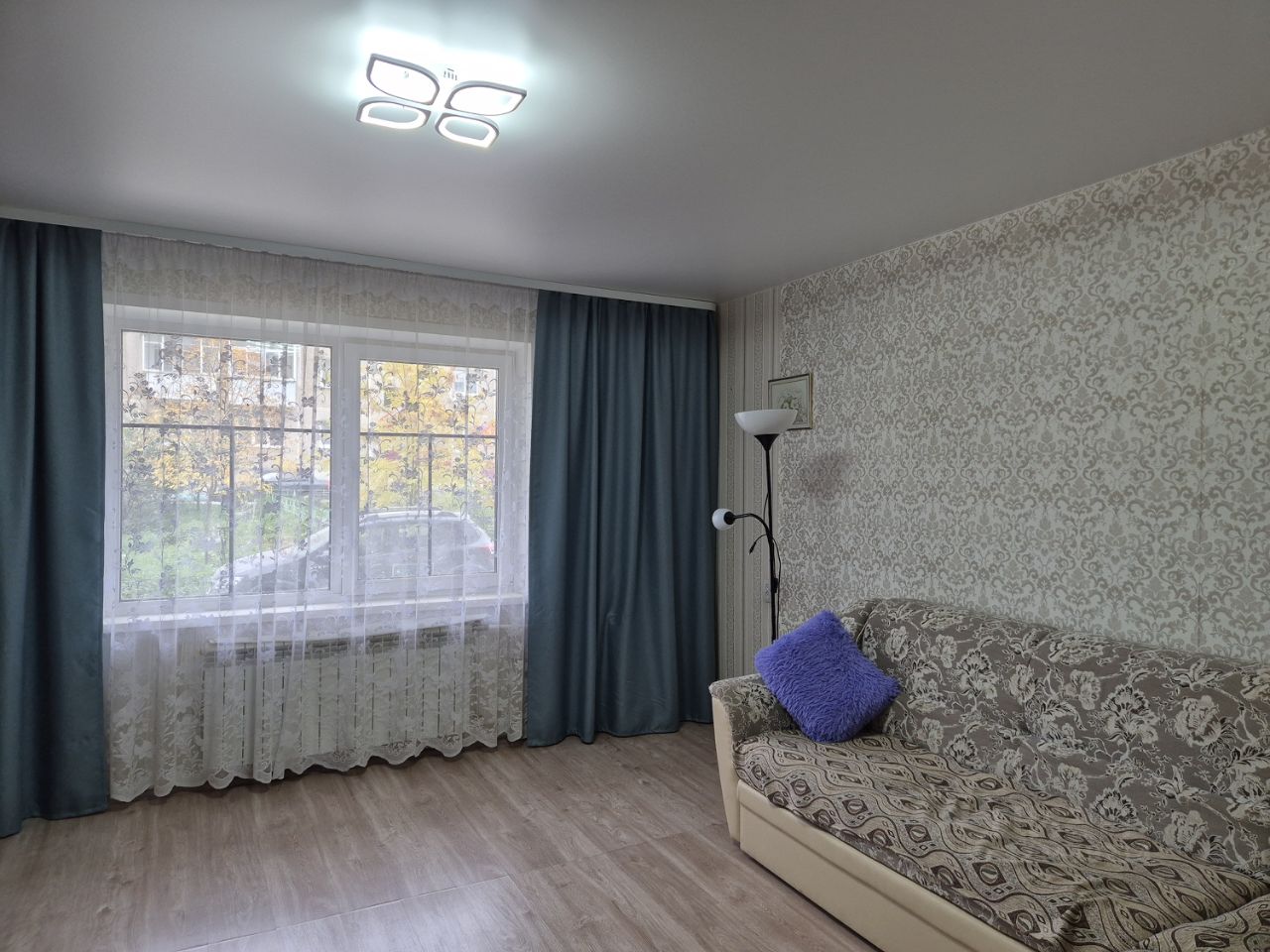 Квартира в хорошем состоянии: окна пластиковые, поменяны батареи, установлен водонагреватель. В ванной комнате стены отделаны панельной ПВХ, установлен счетчик воды. Раздельный санузел. Кухня 9 м², кухонный гарнитур установлен год назад.