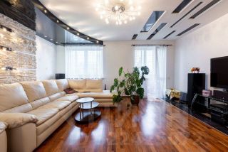 8 окон и 3 лоджии на юг ( пруд) , 4 окна и 1 лоджия на север. Кухня 14,5 метров, 3 спальни по 16-17 кв метров, гостиная 25 метров, каминная- бильярдная 30 метров, кабинет, гардеробная, два санузла, 6 встроенных шкафов, встроенный книжный шкаф, сейф- оружейный шкаф, 5 кондиционеров и прочее.