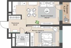 Продаётся 1-комнатная квартира в строящемся доме (Дом 2 этап 1.2), срок сдачи: I-кв. 2028, общей площадью 52.2 кв.м., на 24 этаже.