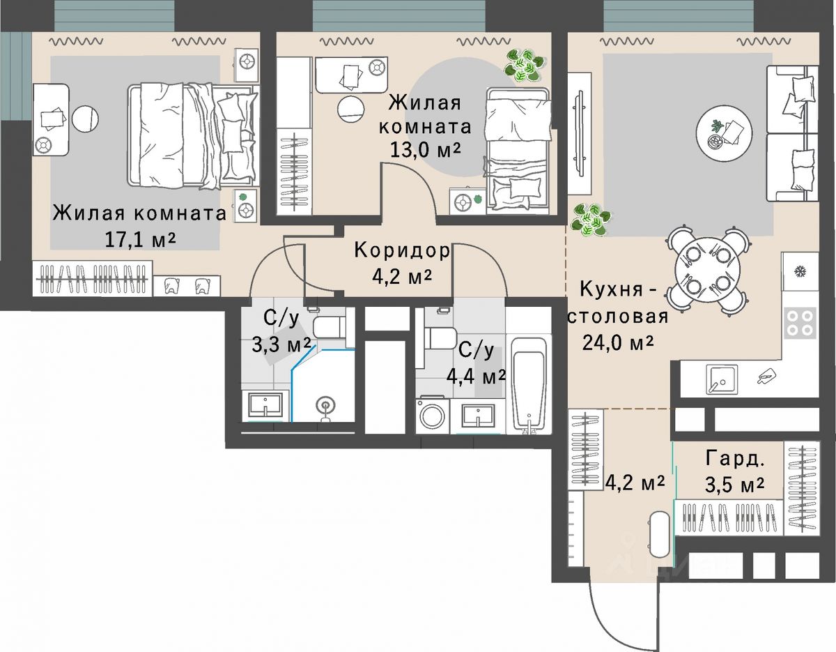 Возможность провести бесплатную перепланировку от застройщика зависит от графика производства строительных работ. Необходимо уточнять возможность в центре продаж.