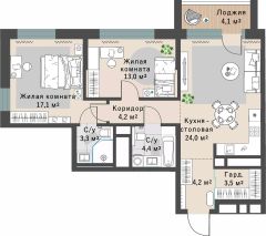 Продаётся 2-комнатная квартира в строящемся доме (Дом 2 этап 1.2), срок сдачи: I-кв. 2028, общей площадью 75.8 кв.м., на 15 этаже.