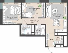 Продаётся 2-комнатная квартира в строящемся доме (Дом 1 этап 1.1), срок сдачи: I-кв. 2028, общей площадью 72.1 кв.м., на 12 этаже.