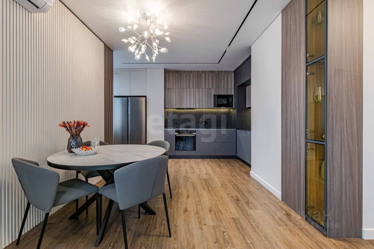 Это единственная планировка евро-3 на 12 этаже с двумя большими комнатами и просторной кухней-гостиной (31 кв.м.). Минимальное количество соседей обеспечивает тишину и спокойствие. Камерный дом всего с одним подъездом в котором всего 68 квартир. Вся корпусная мебель сделана на заказ, включая гардеробную. В квартире много встроенных шкафов и зон для хранения.