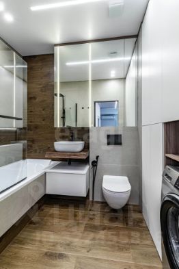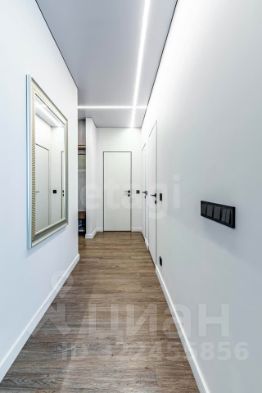 Дополнительные преимущества: декоративная штукатурка, теневой потолок, скрытые двери, теплая стена для полотенец и другие детали. Вся встроенная мебель и техника остаются в квартире.
