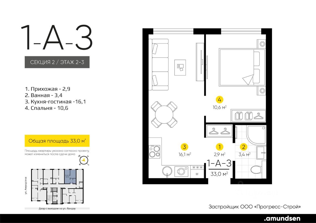 Жилой квартал "Amundsen" - для себя, для семьи, для жизни и развития. Авторская концепция проекта эффектно выделяется в 3 особенностях комплекса: фасады, двор и места общего пользования. AMUNDSEN ПРОЕКТ С ХАРАКТЕРОМ ВЕЛИКОГО ПЕРВООТКРЫВАТЕЛЯ. 4 СЕЗОНА: Двор-трансформер позволяет активно использовать все площадки круглый год. В холодное время года санки, коньки и снежные бои за главную башню. В теплое время источник наполняет двор водой и прохладой. Работают площадки для активных игр и спокойного отдыха. 6 ДЕТСКИХ ПЛОЩАДОК: Мы разделили площадки по возрастным группам для малышей и детей постарше. Качели, аттракционы, водные и активные игры созданы, чтобы познавать мир. 5 ПЛОЩАДОК ДЛЯ СПОКОЙНОГО ОТДЫХА: За счет игры с ландшафтом мы создали приватные зоны, украсили пространство разнотравьем, оживили двор источником. Шум воды, лежаки, беседки, парк места, где ты почувствуешь течение жизни. AMUNDSEN ИДЕАЛЬНОЕ МЕСТО ДЛЯ ЖИЗНИ И РАЗВИТИЯ. - Жилой квартал расположен в экологически чистом районе в окружении двух лесных массивов. - Новые современные школы и детские сады. Спортивный кластер для занятий. - Главный холл пространство для всех. Для самых маленьких игры, для взрослых кафе с ярким дизайном, тихий коворкинг, места для отдыха и светлый, просторный атриум. - Детские площадки "будущего" с оригинальным подходом к созданию игровой среды. - Безопасная территория. Круглосуточная охрана, видеонаблюдение 24/7, электронная система доступа, двор без машин. Застройщик ООО СЗ "Прогресс-Строй", проектная декларация на сайте наш.дом.рф