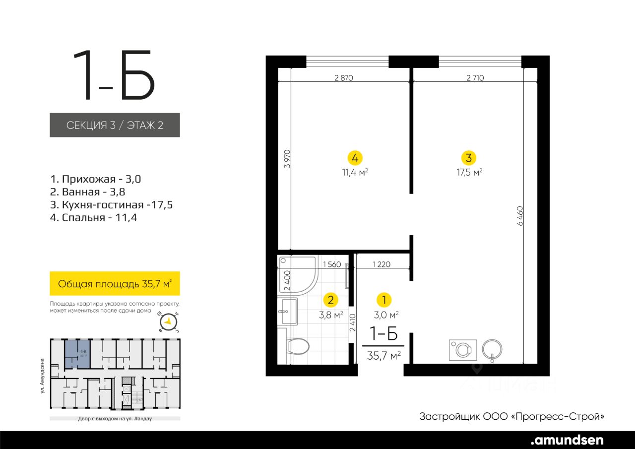 Жилой квартал "Amundsen" - для себя, для семьи, для жизни и развития. Авторская концепция проекта эффектно выделяется в 3 особенностях комплекса: фасады, двор и места общего пользования. AMUNDSEN ПРОЕКТ С ХАРАКТЕРОМ ВЕЛИКОГО ПЕРВООТКРЫВАТЕЛЯ. 4 СЕЗОНА: Двор-трансформер позволяет активно использовать все площадки круглый год. В холодное время года санки, коньки и снежные бои за главную башню. В теплое время источник наполняет двор водой и прохладой. Работают площадки для активных игр и спокойного отдыха. 6 ДЕТСКИХ ПЛОЩАДОК: Мы разделили площадки по возрастным группам для малышей и детей постарше. Качели, аттракционы, водные и активные игры созданы, чтобы познавать мир. 5 ПЛОЩАДОК ДЛЯ СПОКОЙНОГО ОТДЫХА: За счет игры с ландшафтом мы создали приватные зоны, украсили пространство разнотравьем, оживили двор источником. Шум воды, лежаки, беседки, парк места, где ты почувствуешь течение жизни. AMUNDSEN ИДЕАЛЬНОЕ МЕСТО ДЛЯ ЖИЗНИ И РАЗВИТИЯ. - Жилой квартал расположен в экологически чистом районе в окружении двух лесных массивов. - Новые современные школы и детские сады. Спортивный кластер для занятий. - Главный холл пространство для всех. Для самых маленьких игры, для взрослых кафе с ярким дизайном, тихий коворкинг, места для отдыха и светлый, просторный атриум. - Детские площадки "будущего" с оригинальным подходом к созданию игровой среды. - Безопасная территория. Круглосуточная охрана, видеонаблюдение 24/7, электронная система доступа, двор без машин. Застройщик ООО СЗ "Прогресс-Строй", проектная декларация на сайте наш.дом.рф