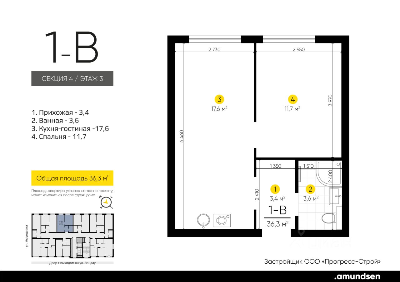 Жилой квартал "Amundsen" - для себя, для семьи, для жизни и развития. Авторская концепция проекта эффектно выделяется в 3 особенностях комплекса: фасады, двор и места общего пользования. AMUNDSEN ПРОЕКТ С ХАРАКТЕРОМ ВЕЛИКОГО ПЕРВООТКРЫВАТЕЛЯ. 4 СЕЗОНА: Двор-трансформер позволяет активно использовать все площадки круглый год. В холодное время года санки, коньки и снежные бои за главную башню. В теплое время источник наполняет двор водой и прохладой. Работают площадки для активных игр и спокойного отдыха. 6 ДЕТСКИХ ПЛОЩАДОК: Мы разделили площадки по возрастным группам для малышей и детей постарше. Качели, аттракционы, водные и активные игры созданы, чтобы познавать мир. 5 ПЛОЩАДОК ДЛЯ СПОКОЙНОГО ОТДЫХА: За счет игры с ландшафтом мы создали приватные зоны, украсили пространство разнотравьем, оживили двор источником. Шум воды, лежаки, беседки, парк места, где ты почувствуешь течение жизни. AMUNDSEN ИДЕАЛЬНОЕ МЕСТО ДЛЯ ЖИЗНИ И РАЗВИТИЯ. - Жилой квартал расположен в экологически чистом районе в окружении двух лесных массивов. - Новые современные школы и детские сады. Спортивный кластер для занятий. - Главный холл пространство для всех. Для самых маленьких игры, для взрослых кафе с ярким дизайном, тихий коворкинг, места для отдыха и светлый, просторный атриум. - Детские площадки "будущего" с оригинальным подходом к созданию игровой среды. - Безопасная территория. Круглосуточная охрана, видеонаблюдение 24/7, электронная система доступа, двор без машин. Застройщик ООО СЗ "Прогресс-Строй", проектная декларация на сайте наш.дом.рф