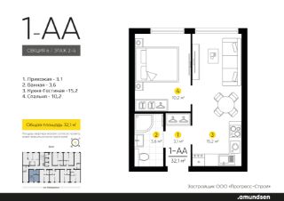 Жилой квартал "Amundsen" - для себя, для семьи, для жизни и развития. Авторская концепция проекта эффектно выделяется в 3 особенностях комплекса: фасады, двор и места общего пользования. AMUNDSEN ПРОЕКТ С ХАРАКТЕРОМ ВЕЛИКОГО ПЕРВООТКРЫВАТЕЛЯ. 4 СЕЗОНА: Двор-трансформер позволяет активно использовать все площадки круглый год. В холодное время года санки, коньки и снежные бои за главную башню. В теплое время источник наполняет двор водой и прохладой. Работают площадки для активных игр и спокойного отдыха. 6 ДЕТСКИХ ПЛОЩАДОК: Мы разделили площадки по возрастным группам для малышей и детей постарше. Качели, аттракционы, водные и активные игры созданы, чтобы познавать мир. 5 ПЛОЩАДОК ДЛЯ СПОКОЙНОГО ОТДЫХА: За счет игры с ландшафтом мы создали приватные зоны, украсили пространство разнотравьем, оживили двор источником. Шум воды, лежаки, беседки, парк места, где ты почувствуешь течение жизни. AMUNDSEN ИДЕАЛЬНОЕ МЕСТО ДЛЯ ЖИЗНИ И РАЗВИТИЯ. - Жилой квартал расположен в экологически чистом районе в окружении двух лесных массивов. - Новые современные школы и детские сады. Спортивный кластер для занятий. - Главный холл пространство для всех. Для самых маленьких игры, для взрослых кафе с ярким дизайном, тихий коворкинг, места для отдыха и светлый, просторный атриум. - Детские площадки "будущего" с оригинальным подходом к созданию игровой среды. - Безопасная территория. Круглосуточная охрана, видеонаблюдение 24/7, электронная система доступа, двор без машин. Застройщик ООО СЗ "Прогресс-Строй", проектная декларация на сайте наш.дом.рф