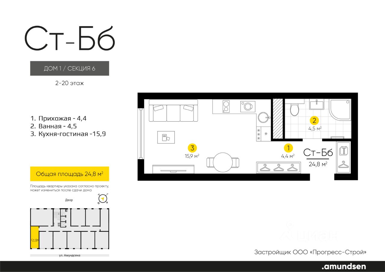 Жилой квартал "Amundsen" - для себя, для семьи, для жизни и развития. Авторская концепция проекта эффектно выделяется в 3 особенностях комплекса: фасады, двор и места общего пользования. AMUNDSEN ПРОЕКТ С ХАРАКТЕРОМ ВЕЛИКОГО ПЕРВООТКРЫВАТЕЛЯ. 4 СЕЗОНА: Двор-трансформер позволяет активно использовать все площадки круглый год. В холодное время года санки, коньки и снежные бои за главную башню. В теплое время источник наполняет двор водой и прохладой. Работают площадки для активных игр и спокойного отдыха. 6 ДЕТСКИХ ПЛОЩАДОК: Мы разделили площадки по возрастным группам для малышей и детей постарше. Качели, аттракционы, водные и активные игры созданы, чтобы познавать мир. 5 ПЛОЩАДОК ДЛЯ СПОКОЙНОГО ОТДЫХА: За счет игры с ландшафтом мы создали приватные зоны, украсили пространство разнотравьем, оживили двор источником. Шум воды, лежаки, беседки, парк места, где ты почувствуешь течение жизни. AMUNDSEN ИДЕАЛЬНОЕ МЕСТО ДЛЯ ЖИЗНИ И РАЗВИТИЯ. - Жилой квартал расположен в экологически чистом районе в окружении двух лесных массивов. - Новые современные школы и детские сады. Спортивный кластер для занятий. - Главный холл пространство для всех. Для самых маленьких игры, для взрослых кафе с ярким дизайном, тихий коворкинг, места для отдыха и светлый, просторный атриум. - Детские площадки "будущего" с оригинальным подходом к созданию игровой среды. - Безопасная территория. Круглосуточная охрана, видеонаблюдение 24/7, электронная система доступа, двор без машин. Застройщик ООО СЗ "Прогресс-Строй", проектная декларация на сайте наш.дом.рф