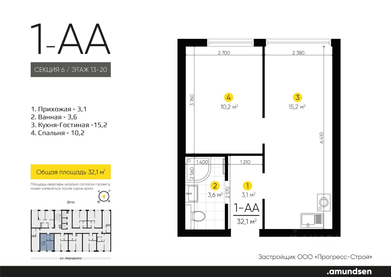 Жилой квартал "Amundsen" - для себя, для семьи, для жизни и развития. Авторская концепция проекта эффектно выделяется в 3 особенностях комплекса: фасады, двор и места общего пользования. AMUNDSEN ПРОЕКТ С ХАРАКТЕРОМ ВЕЛИКОГО ПЕРВООТКРЫВАТЕЛЯ. 4 СЕЗОНА: Двор-трансформер позволяет активно использовать все площадки круглый год. В холодное время года санки, коньки и снежные бои за главную башню. В теплое время источник наполняет двор водой и прохладой. Работают площадки для активных игр и спокойного отдыха. 6 ДЕТСКИХ ПЛОЩАДОК: Мы разделили площадки по возрастным группам для малышей и детей постарше. Качели, аттракционы, водные и активные игры созданы, чтобы познавать мир. 5 ПЛОЩАДОК ДЛЯ СПОКОЙНОГО ОТДЫХА: За счет игры с ландшафтом мы создали приватные зоны, украсили пространство разнотравьем, оживили двор источником. Шум воды, лежаки, беседки, парк места, где ты почувствуешь течение жизни. AMUNDSEN ИДЕАЛЬНОЕ МЕСТО ДЛЯ ЖИЗНИ И РАЗВИТИЯ. - Жилой квартал расположен в экологически чистом районе в окружении двух лесных массивов. - Новые современные школы и детские сады. Спортивный кластер для занятий. - Главный холл пространство для всех. Для самых маленьких игры, для взрослых кафе с ярким дизайном, тихий коворкинг, места для отдыха и светлый, просторный атриум. - Детские площадки "будущего" с оригинальным подходом к созданию игровой среды. - Безопасная территория. Круглосуточная охрана, видеонаблюдение 24/7, электронная система доступа, двор без машин. Застройщик ООО СЗ "Прогресс-Строй", проектная декларация на сайте наш.дом.рф