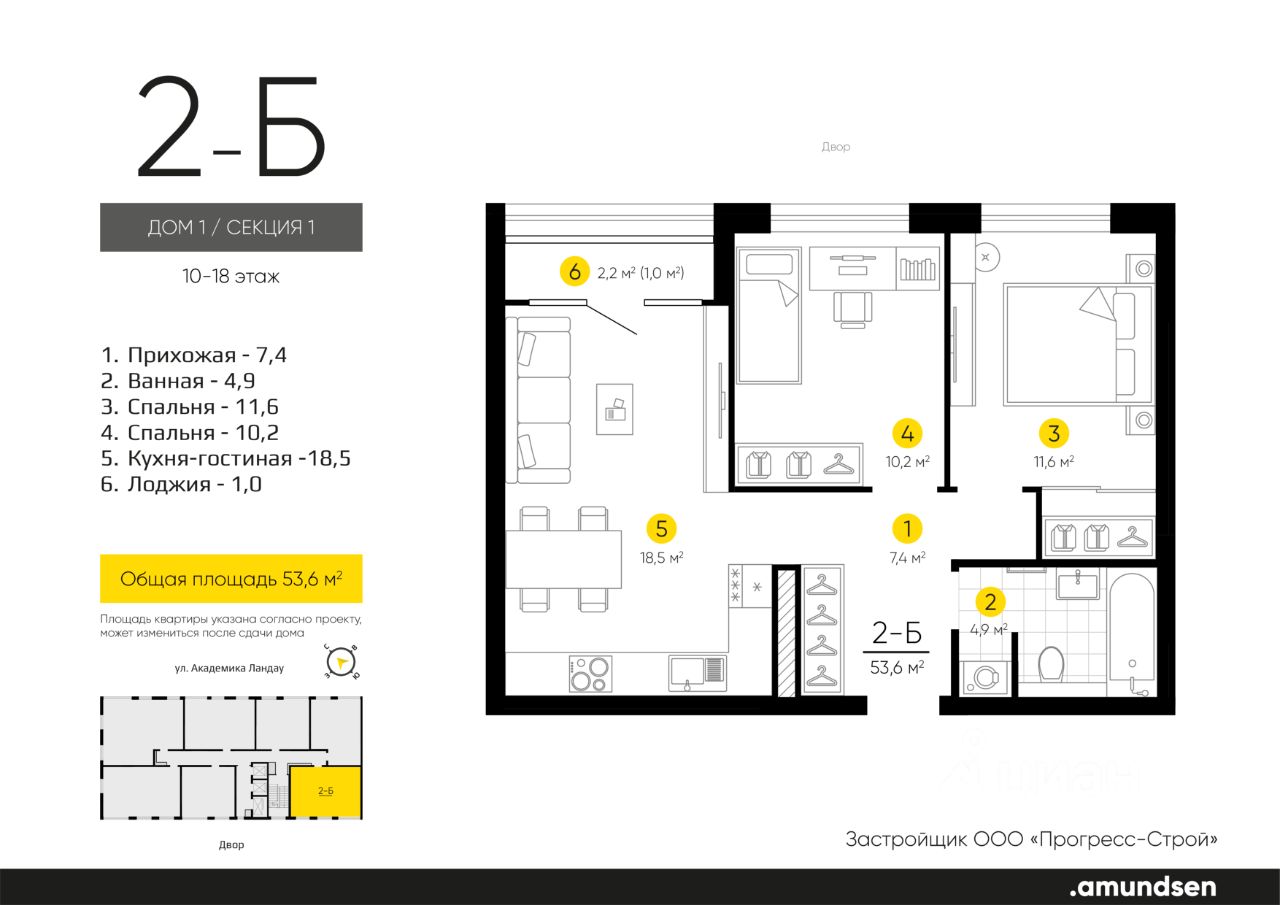 Жилой квартал "Amundsen" - для себя, для семьи, для жизни и развития. Авторская концепция проекта эффектно выделяется в 3 особенностях комплекса: фасады, двор и места общего пользования. AMUNDSEN ПРОЕКТ С ХАРАКТЕРОМ ВЕЛИКОГО ПЕРВООТКРЫВАТЕЛЯ. 4 СЕЗОНА: Двор-трансформер позволяет активно использовать все площадки круглый год. В холодное время года санки, коньки и снежные бои за главную башню. В теплое время источник наполняет двор водой и прохладой. Работают площадки для активных игр и спокойного отдыха. 6 ДЕТСКИХ ПЛОЩАДОК: Мы разделили площадки по возрастным группам для малышей и детей постарше. Качели, аттракционы, водные и активные игры созданы, чтобы познавать мир. 5 ПЛОЩАДОК ДЛЯ СПОКОЙНОГО ОТДЫХА: За счет игры с ландшафтом мы создали приватные зоны, украсили пространство разнотравьем, оживили двор источником. Шум воды, лежаки, беседки, парк места, где ты почувствуешь течение жизни. AMUNDSEN ИДЕАЛЬНОЕ МЕСТО ДЛЯ ЖИЗНИ И РАЗВИТИЯ. - Жилой квартал расположен в экологически чистом районе в окружении двух лесных массивов. - Новые современные школы и детские сады. Спортивный кластер для занятий. - Главный холл пространство для всех. Для самых маленьких игры, для взрослых кафе с ярким дизайном, тихий коворкинг, места для отдыха и светлый, просторный атриум. - Детские площадки "будущего" с оригинальным подходом к созданию игровой среды. - Безопасная территория. Круглосуточная охрана, видеонаблюдение 24/7, электронная система доступа, двор без машин. Застройщик ООО СЗ "Прогресс-Строй", проектная декларация на сайте наш.дом.рф