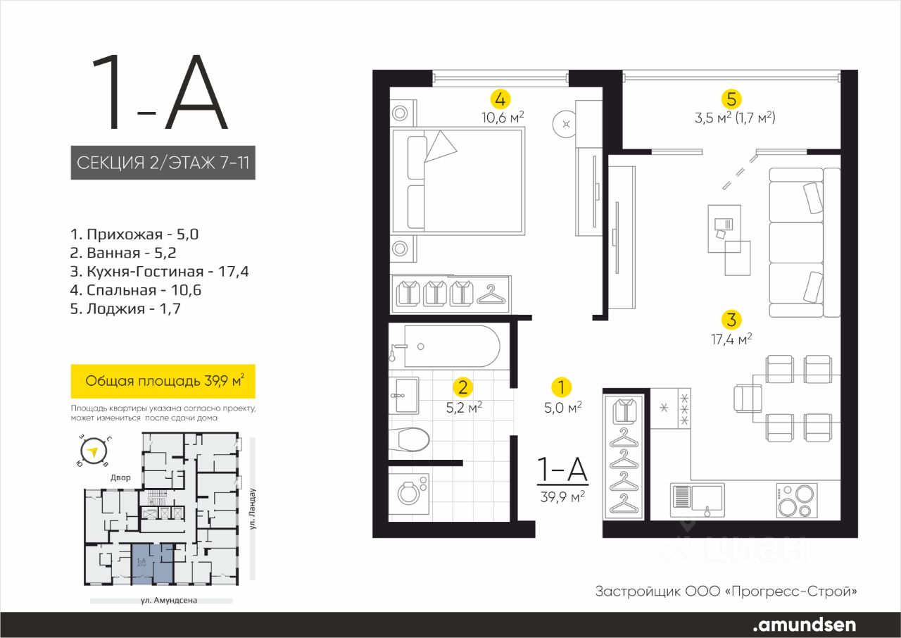 Жилой квартал "Amundsen" - для себя, для семьи, для жизни и развития. Авторская концепция проекта эффектно выделяется в 3 особенностях комплекса: фасады, двор и места общего пользования. AMUNDSEN ПРОЕКТ С ХАРАКТЕРОМ ВЕЛИКОГО ПЕРВООТКРЫВАТЕЛЯ. 4 СЕЗОНА: Двор-трансформер позволяет активно использовать все площадки круглый год. В холодное время года санки, коньки и снежные бои за главную башню. В теплое время источник наполняет двор водой и прохладой. Работают площадки для активных игр и спокойного отдыха. 6 ДЕТСКИХ ПЛОЩАДОК: Мы разделили площадки по возрастным группам для малышей и детей постарше. Качели, аттракционы, водные и активные игры созданы, чтобы познавать мир. 5 ПЛОЩАДОК ДЛЯ СПОКОЙНОГО ОТДЫХА: За счет игры с ландшафтом мы создали приватные зоны, украсили пространство разнотравьем, оживили двор источником. Шум воды, лежаки, беседки, парк места, где ты почувствуешь течение жизни. AMUNDSEN ИДЕАЛЬНОЕ МЕСТО ДЛЯ ЖИЗНИ И РАЗВИТИЯ. - Жилой квартал расположен в экологически чистом районе в окружении двух лесных массивов. - Новые современные школы и детские сады. Спортивный кластер для занятий. - Главный холл пространство для всех. Для самых маленьких игры, для взрослых кафе с ярким дизайном, тихий коворкинг, места для отдыха и светлый, просторный атриум. - Детские площадки "будущего" с оригинальным подходом к созданию игровой среды. - Безопасная территория. Круглосуточная охрана, видеонаблюдение 24/7, электронная система доступа, двор без машин. Застройщик ООО СЗ "Прогресс-Строй", проектная декларация на сайте наш.дом.рф
