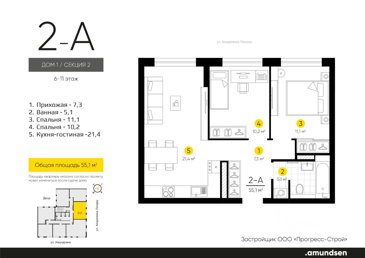 Жилой квартал "Amundsen" - для себя, для семьи, для жизни и развития. Авторская концепция проекта эффектно выделяется в 3 особенностях комплекса: фасады, двор и места общего пользования. AMUNDSEN ПРОЕКТ С ХАРАКТЕРОМ ВЕЛИКОГО ПЕРВООТКРЫВАТЕЛЯ. 4 СЕЗОНА: Двор-трансформер позволяет активно использовать все площадки круглый год. В холодное время года санки, коньки и снежные бои за главную башню. В теплое время источник наполняет двор водой и прохладой. Работают площадки для активных игр и спокойного отдыха. 6 ДЕТСКИХ ПЛОЩАДОК: Мы разделили площадки по возрастным группам для малышей и детей постарше. Качели, аттракционы, водные и активные игры созданы, чтобы познавать мир. 5 ПЛОЩАДОК ДЛЯ СПОКОЙНОГО ОТДЫХА: За счет игры с ландшафтом мы создали приватные зоны, украсили пространство разнотравьем, оживили двор источником. Шум воды, лежаки, беседки, парк места, где ты почувствуешь течение жизни. AMUNDSEN ИДЕАЛЬНОЕ МЕСТО ДЛЯ ЖИЗНИ И РАЗВИТИЯ. - Жилой квартал расположен в экологически чистом районе в окружении двух лесных массивов. - Новые современные школы и детские сады. Спортивный кластер для занятий. - Главный холл пространство для всех. Для самых маленьких игры, для взрослых кафе с ярким дизайном, тихий коворкинг, места для отдыха и светлый, просторный атриум. - Детские площадки "будущего" с оригинальным подходом к созданию игровой среды. - Безопасная территория. Круглосуточная охрана, видеонаблюдение 24/7, электронная система доступа, двор без машин. Застройщик ООО СЗ "Прогресс-Строй", проектная декларация на сайте наш.дом.рф